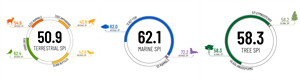 Terrestrial and Marine SPI have increased to 50.9 and 62.1, respectively, while Tree SPI (included for the first time) is at 58.3.